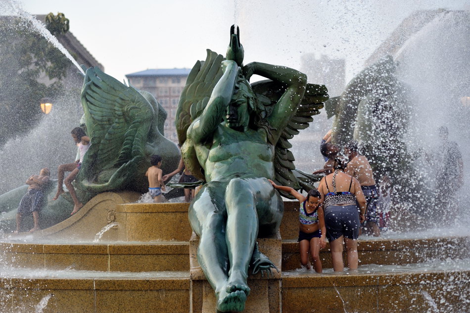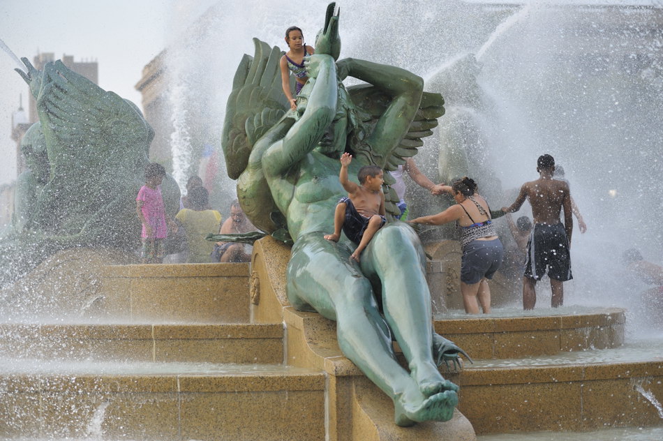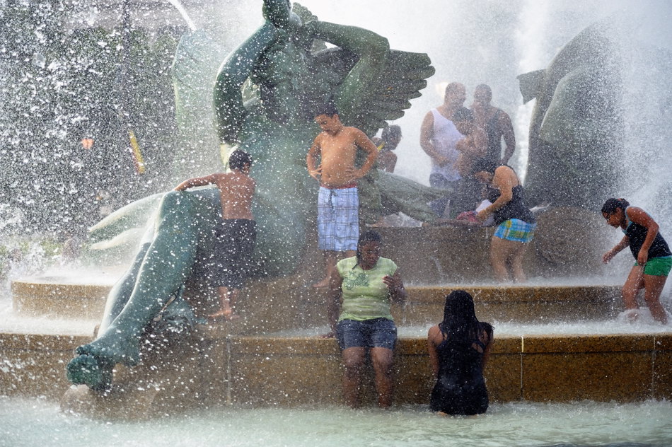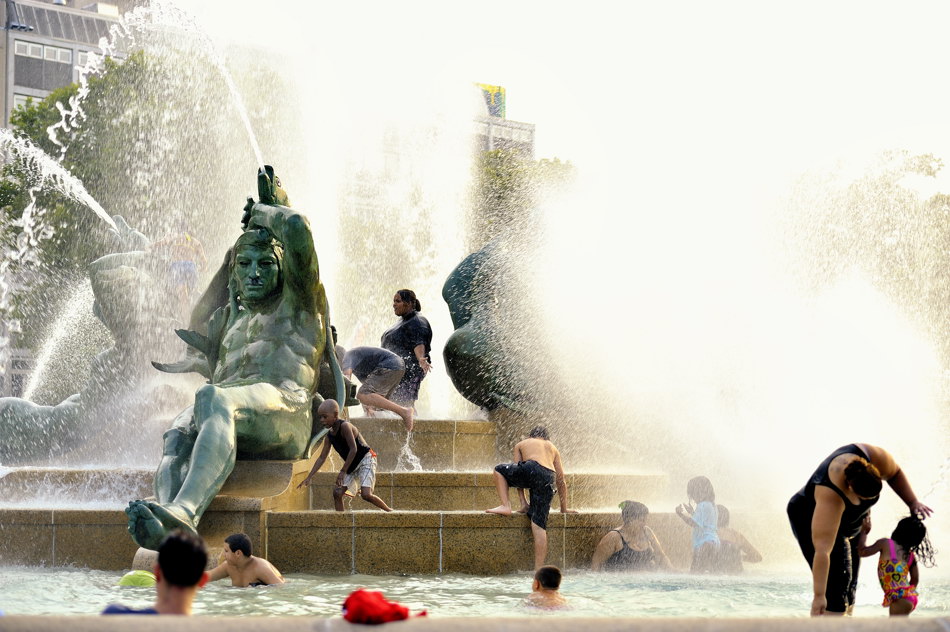 Today on the way home from work I was thinking I needed to get some photos of people dealing with the heat wave. Earlier in the day I went out for lunch near the Camden waterfront and ate outside. Of course I was in the shade. It really didn’t seem so bad until I saw that the temperature had risen to 100 degrees with a real feel of 120 degrees!