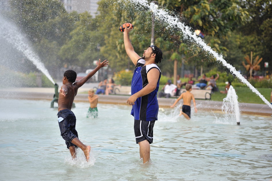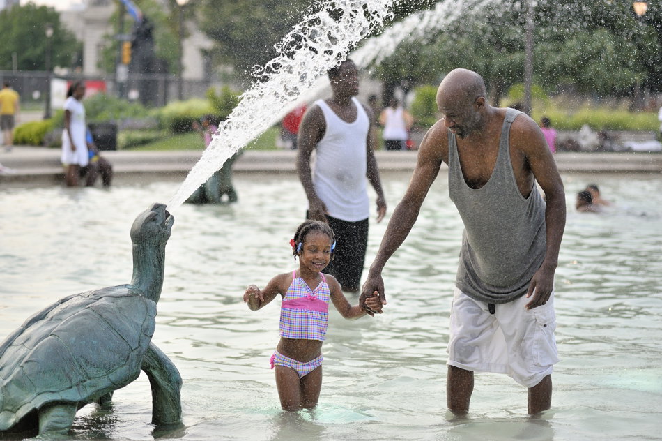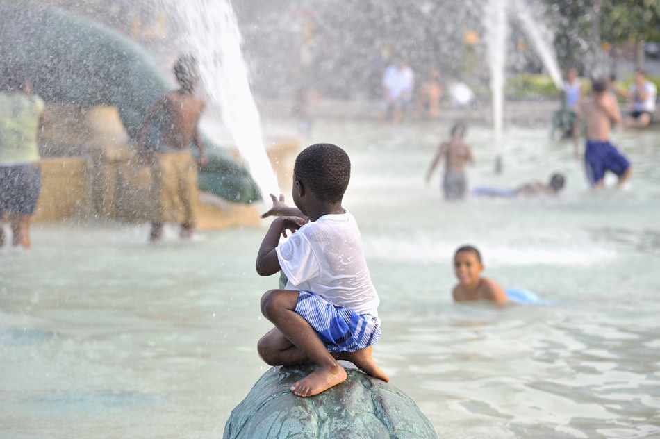 Today on the way home from work I was thinking I needed to get some photos of people dealing with the heat wave. Earlier in the day I went out for lunch near the Camden waterfront and ate outside. Of course I was in the shade. It really didn’t seem so bad until I saw that the temperature had risen to 100 degrees with a real feel of 120 degrees!